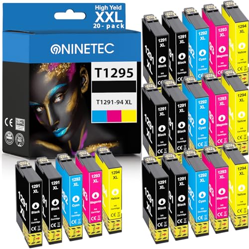 D&C Cartouches d'encre Compatible pour Epson T1295-T1291 T1292 T1293 T1294 pour Epson Workforce WF-3520 WF-3540 WF-7515 WF-7525 Stylus Office BX630FW Stylus SX235W SX425W SX445W SX535WD (20-Pack)