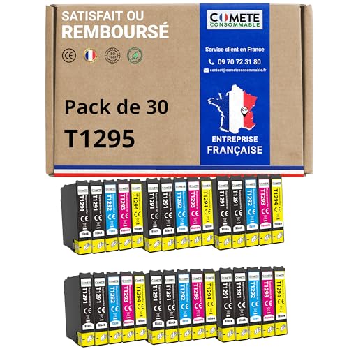 COMETE, Marque française - T1295-30 Cartouches d'encre Compatibles avec Epson T1295 Pomme (T1291 T1292 T1293 T1294) - pour Epson Stylus SX525WD SX425W Workforce wf-3520 (12 Noir et 18 Couleur)