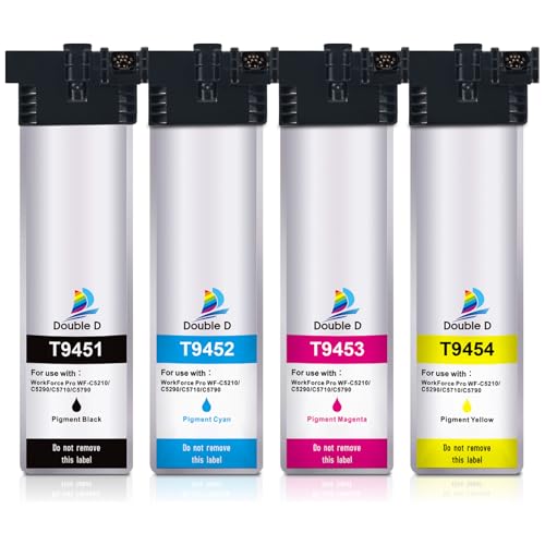 DOUBLE D T9451-T9454 Cartouches d'encre Compatible avec Epson T9451 T9452 T9453 T9454 pour Epson Workforce Pro WF-C5710DWF WF-C5210DW WF-C5790DWF WF-C5290DW, Epson WF-C5710 WF-C5790 (4 Pack)