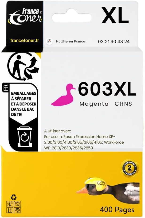 Cartouches d'encre compatibles pour cartouches Epson 603 603XL pour Epson WF 2810 XP 2100 XP-3100 XP-4100 XP-2105 XP-3105 XP-4105 WorkForce WF 2830 WF 2835 WF 2850 Capacité 350 pages 1-Pack Magenta