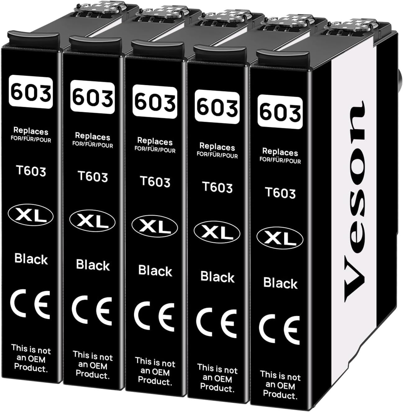 Veson Noir 603 XL Cartouches d'imprimante compatibles pour Epson 603XL Remplacement avec Epson Workforce WF-2810 WF-2830 WF-2835 WF-2850 XP-2100 XP-2105 XP-3100 XP-3105 XP-4100 XP-4105 (5 Pack)