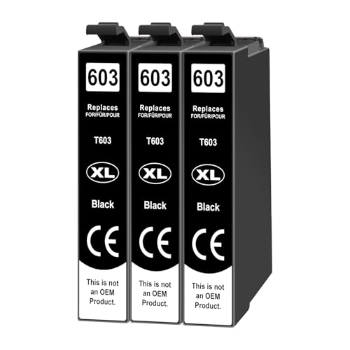 Yowell 3X Cartouches d'encre 603XL compatibles avec Epson 603 603XL Noir pour Expression Home XP-3105 XP-2100 XP-2105 XP-4100 XP-4105 Workforce WF-2830 WF-2810 WF-2835 WF-2850