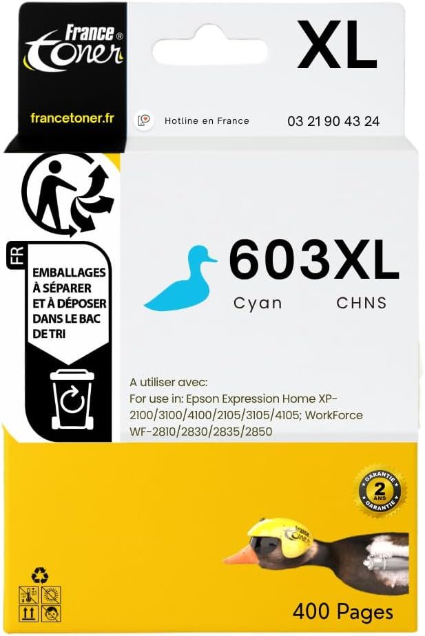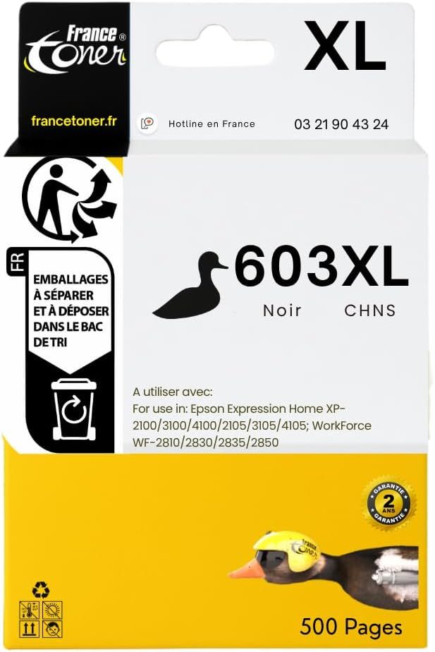 603 XL Compatible avec Epson 603 603XL Cartouches d'encre pour Epson WorkForce WF-2810 2830 2835 2850 Epson Expression Home XP-2100 2105 3100 3105 4100 4105