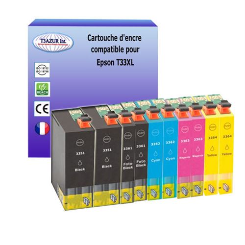 10 cartouches d'encre compatibles pour Epson XP635, XP640, XP645 remplace Epson T33XL (33XL)- T3AZUR