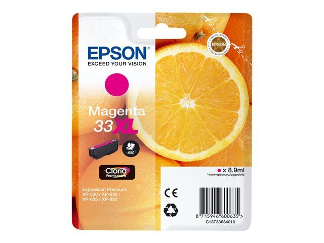 Epson 33XL - 8.9 ml - haute capacité - magenta - originale - blister - cartouche d'encre - pour Expression Home XP-635, 830; Expression Premium XP-530, 540, 630, 635, 640, 645, 830, 900