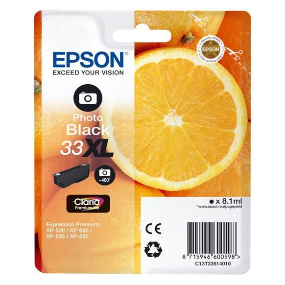 Epson 33 - 8.1 ml - haute capacité - photo noire - original - blister - cartouche d'encre - pour Expression Home XP-635, 830; Expression Premium XP-530, 540, 630, 635, 640, 645, 830, 900