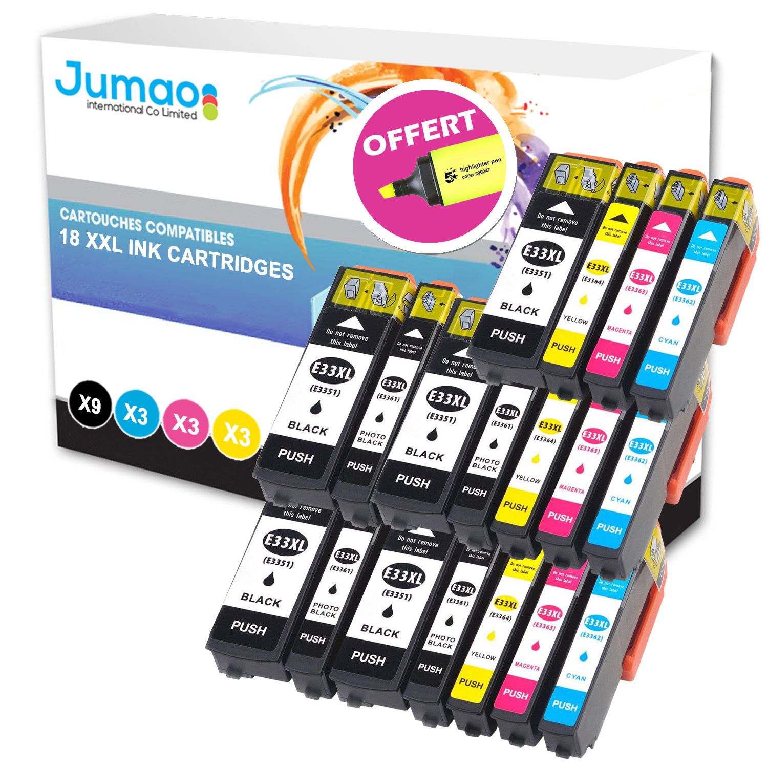 Lot de 18 cartouches 5*N (22ml), 4* NPH (13ml), 3*CMY(13ml) compatibles pour Epson Expression Premium XP-635+ Fluo offert -Jumao-