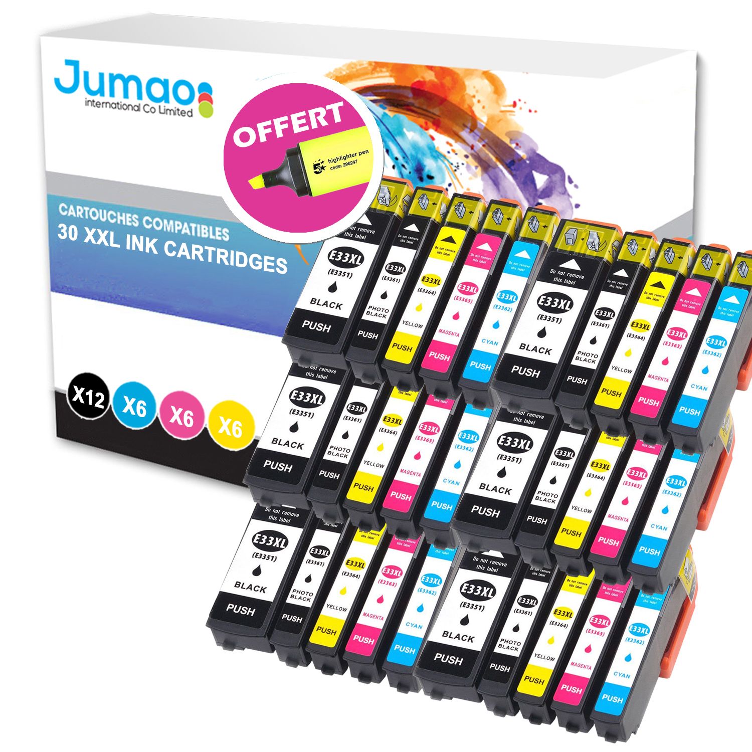 Lot de 30 cartouches 6*N (22ml), 6* NPH (13ml), 6*CMY(13ml) compatibles pour Epson Expression Premium XP-635+ Fluo offert -Jumao-