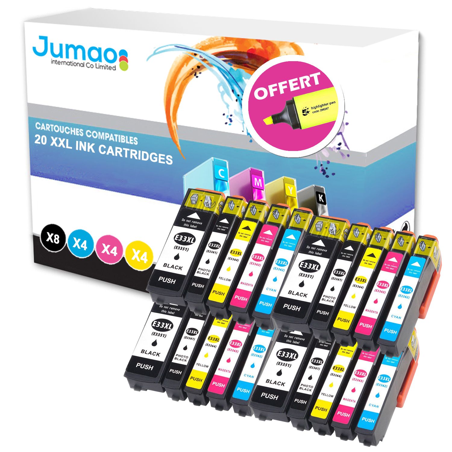 Lot de 20 cartouches 4*N (22ml), 4* NPH (13ml), 4*CMY(13ml) compatibles pour Epson Expression Premium XP-635+ Fluo offert -Jumao-