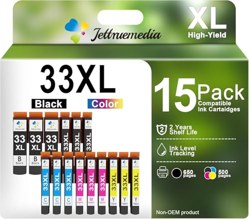 Jettruemedia 33XL Cartouche d'encre Compatible pour Epson 33XL 33 XL pour Expression Premium XP-530 XP-540 XP-630 XP-635 XP-640 XP-645 XP-830 XP-900 XP-7100(15 Pack)