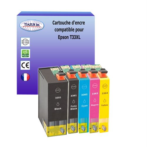 5 cartouches d'encre compatibles pour Epson XP635, XP640, XP645 remplace Epson T33XL (33XL)- T3AZUR