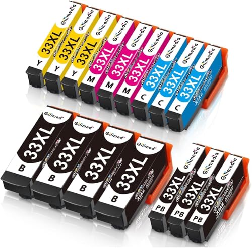 GILIMEDIA 33 XL Pack de 16 Cartouches d'encre Compatible avec Epson 33 33XL Cartouche, pour Expression Premium XP-530 XP-540 XP-630 XP-635 XP-640 XP-645 XP-830 XP-900 XP-7100