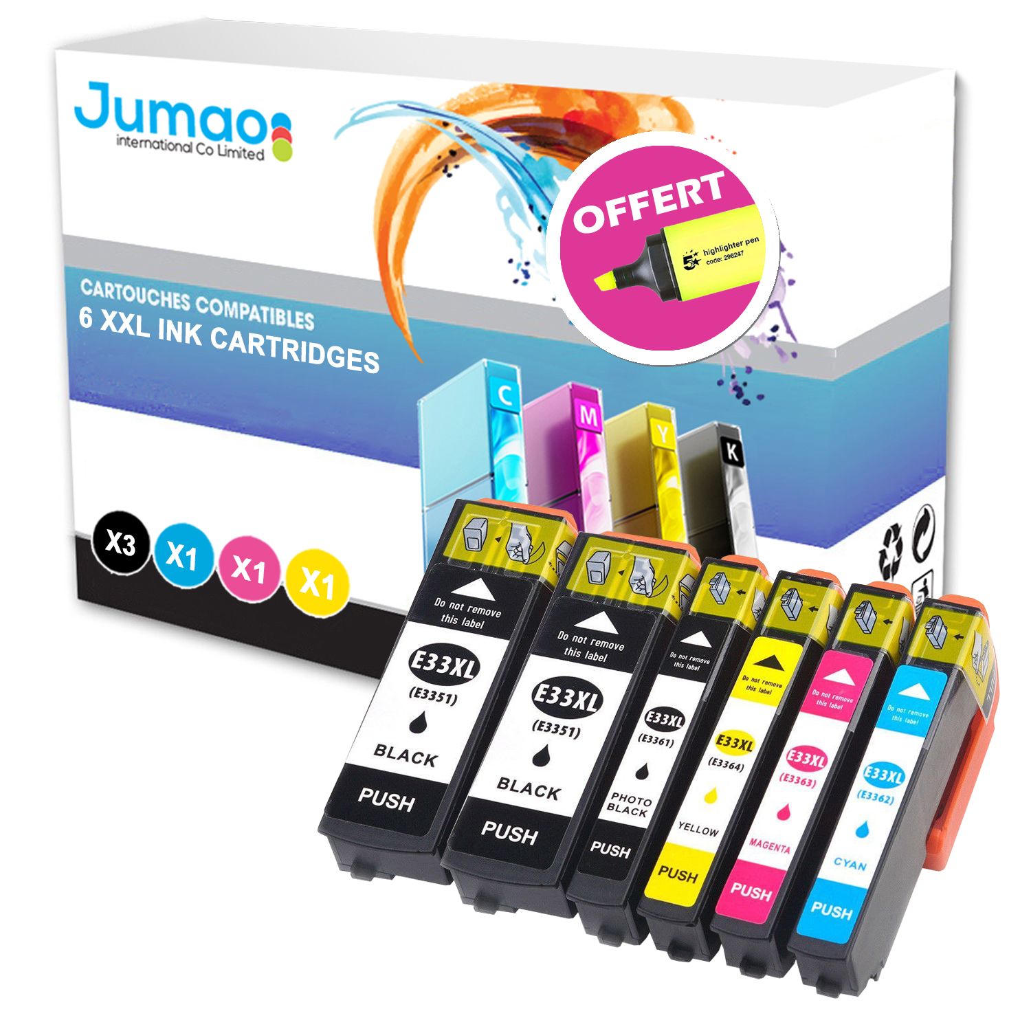 Lot de 6 cartouches 2*N (22ml), 1* NPH (13ml), 1*CMY(13ml) compatibles pour Epson Expression Premium XP-635+ Fluo offert -Jumao-