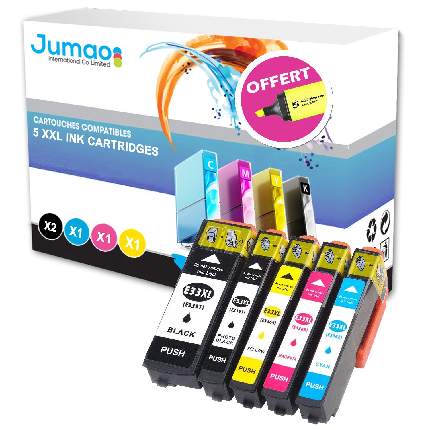 Lot de 5 cartouches 1*N (22ml), 1* NPH (13ml), 1*CMY(13ml) compatibles pour Epson Expression Premium XP-635+ Fluo offert -Jumao-