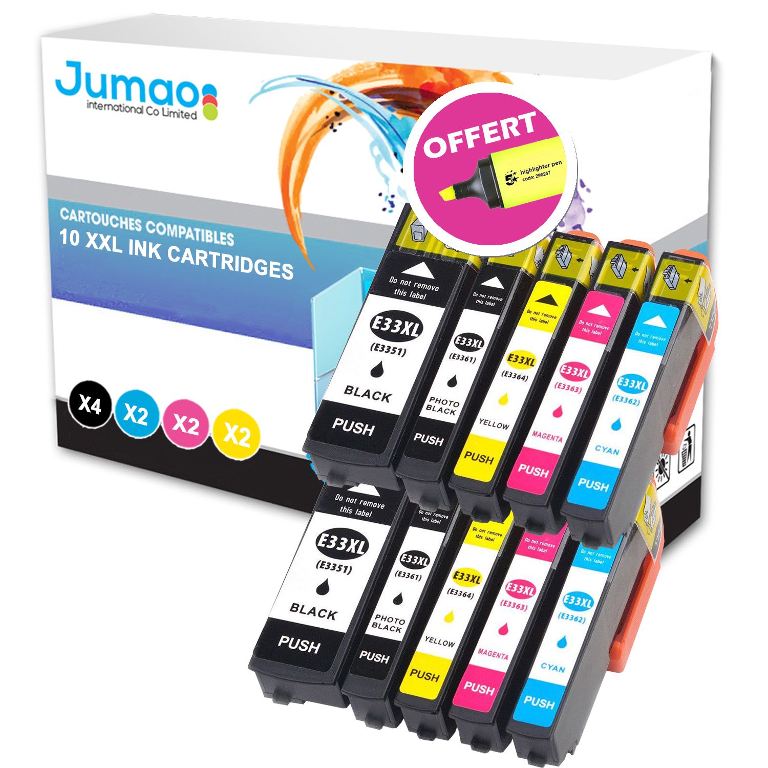 Lot de 10 cartouches (2*N (22ml), 2* NPH (13ml), 2*CMY(13ml)) compatibles pour Epson Expression Premium XP-635+ Fluo offert -Jumao-