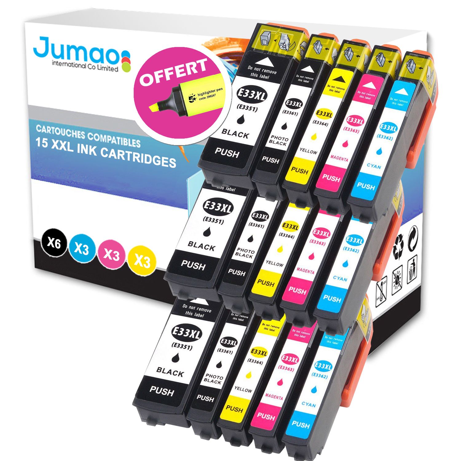Lot de 15 cartouches 3*N (22ml), 3* NPH (13ml), 3*CMY(13ml) compatibles pour Epson Expression Premium XP-635+ Fluo offert -Jumao-