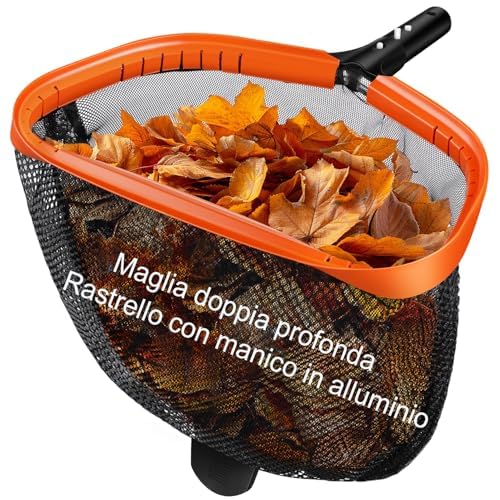 Juqrelith Râteau Epuisette pour Piscine, Filet Nylon et Bord Aluminium, 37x23cm - Résistant et Anticorrosion, Nettoyage Surface et Fond, Idéal Étangs Spa Bassins