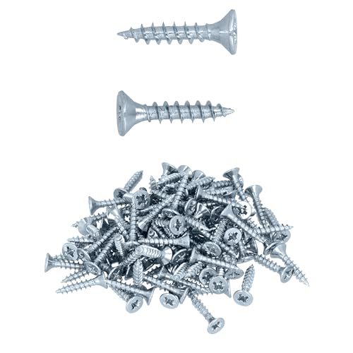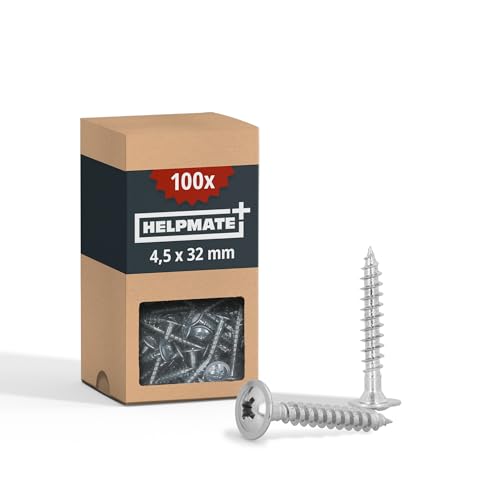 HELPMATE - Lot de 100 vis à bois à tête plate 4,5 x 32 mm galvanisées – Vis à bois avec entraînement PZ2 et encoche de coupe – Pour la fixation de ferrures métalliques sur
