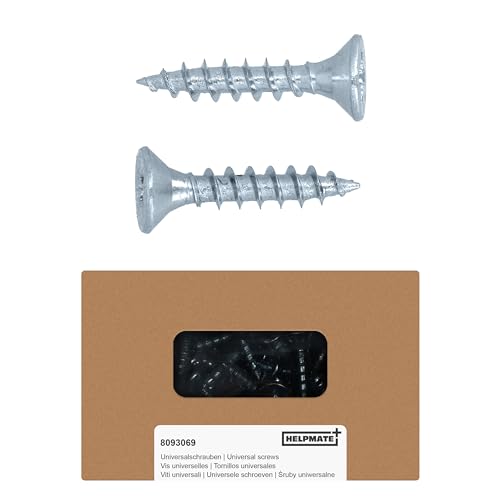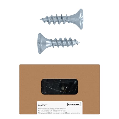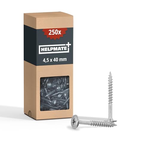 HELPMATE - Lot de 100 vis à bois à tête plate 4,5 x 40 mm galvanisées – Vis à bois avec entraînement PZ2 et encoche de coupe – Pour la fixation de ferrures métalliques sur
