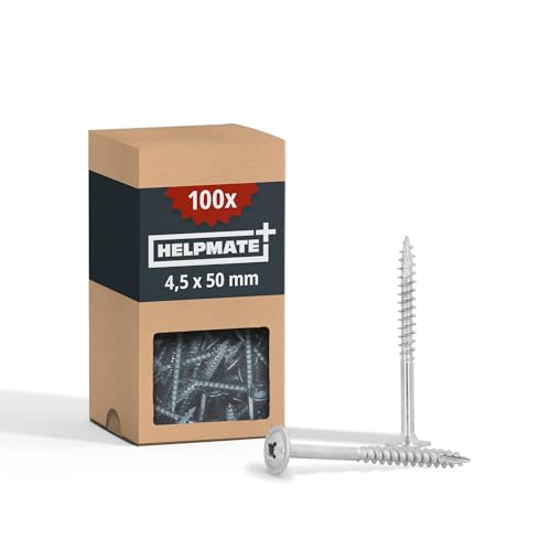 HELPMATE - Lot de 100 vis à bois à tête plate 4,5 x 50 mm galvanisées – Vis à bois avec entraînement PZ2 et encoche de coupe – Pour la fixation de ferrures métalliques sur
