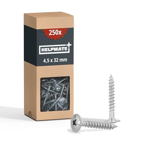 HELPMATE - Lot de 250 vis à bois à tête plate 4,5 x 32 mm galvanisées – Vis à bois avec entraînement PZ2 et encoche de coupe – Pour la fixation de ferrures métalliques sur
