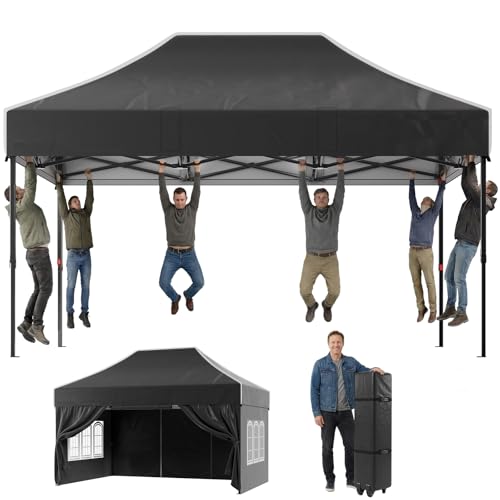 JUMMICO Pavillon Pliable 3x3m Robust pour Conditions Extrêmes|Toit Pointu & Oxford 110g à Revêtement Argenté|Fixation Renforcée|Plus d'Espace de Rangement & de Stabilité
