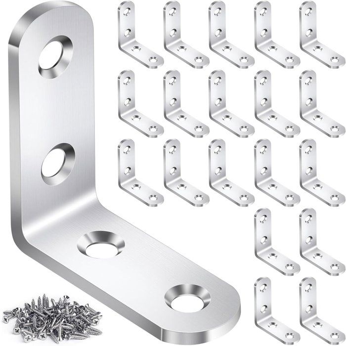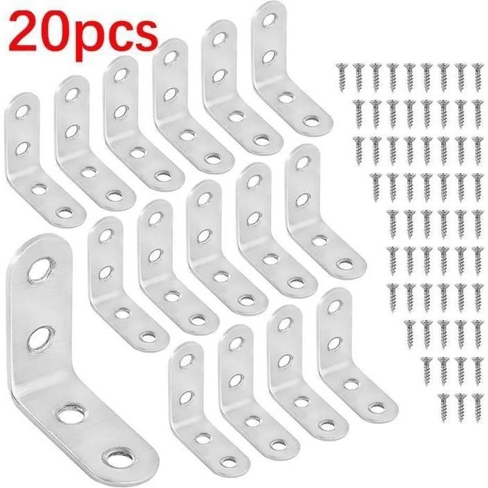20PCS Équerre de Fixation en Inox 45x45mm Équerre Angle 90 Degrés en Acier Inoxydable avec 80 Vis pour la Fixation et la Réparation