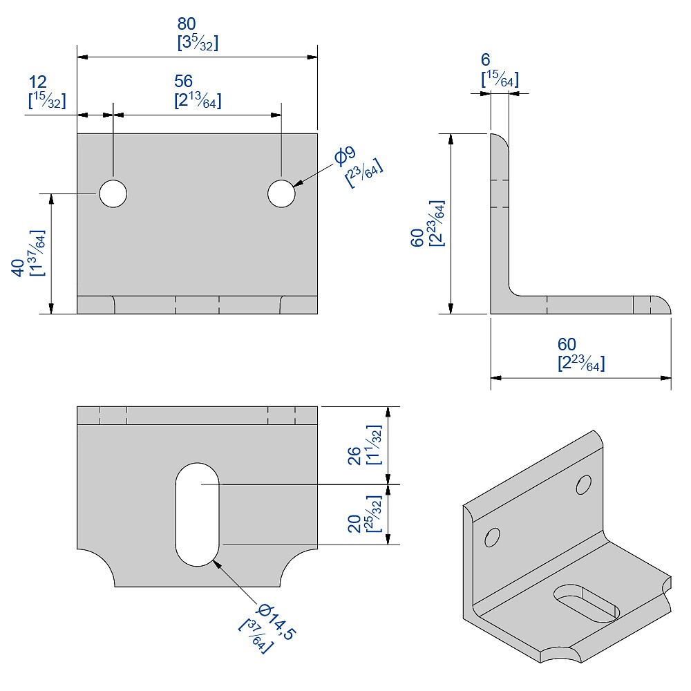 équerre en inox A2 épaisseur 3mm ( lot de 10 ) L longueur 61x61mm