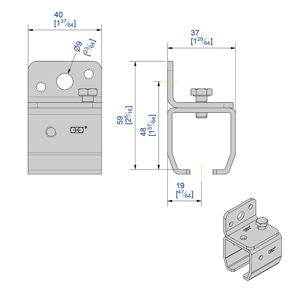 Support équerre enveloppant en INOX 304L pour fixation murale des rails SLID'UP