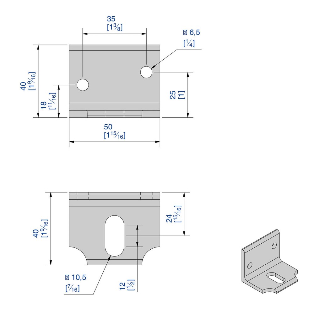 Support équerre en INOX 304L pour fixation murale d'un rail SLID'UP SU2052 et S