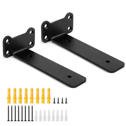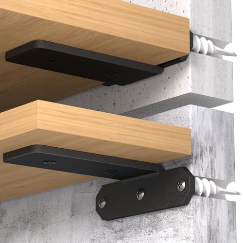 TESSTINA Lot de 6 Supports d'étagère de 10 cm - Charge Lourde - Équerre L pour Montage Mural - Support d'étagère flottante - Charge Maximale : 80 kg - Noir - 6 Pièces, 10 cm
