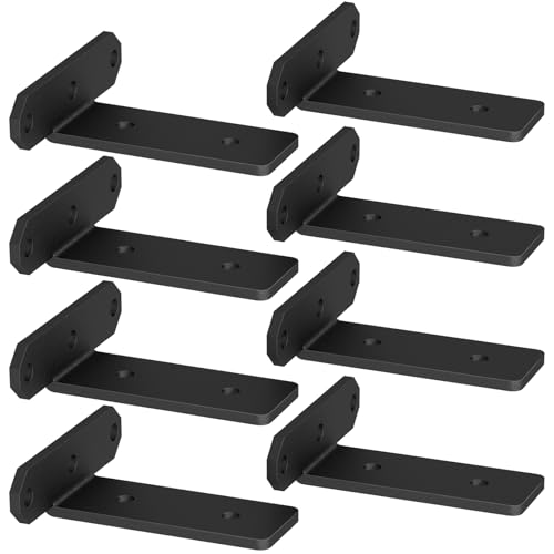 TESSTINA Lot de 8 Supports d'étagère de 15 cm - Charge Lourde - Équerre L pour Montage,Mural - Support d'étagère Flottante - Charge Maximale : 80 kg - Noir - 8 Pièces, 15 cm
