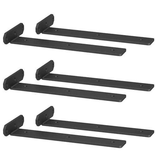 TESSTINA Lot de 6 Supports d'étagère de 25 cm - Charge Lourde - Équerre L pour Montage Mural - Support d'étagère Flottante - Charge Maximale : 80 kg - Noir - 6 Pièces, 25 cm
