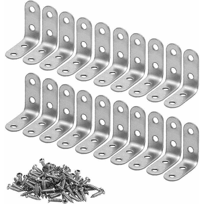Jalleria - Support En Acier Inoxydable,20 pcs Renfort d'angle Equerre Metal avec Vis Équerre Fixation pour Étagère en Bois Armoire Chaise Table Porte
