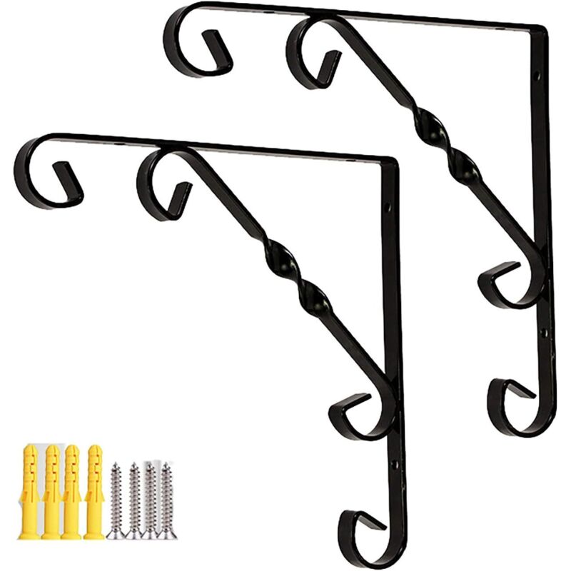 Bardusch-Equerre Etagere Murale 2 Pièces Support Tablette Murale 190 x 140 mm Equerre Metal Fer Forgé Noir Equerre Fixation pour Decoration Murale,