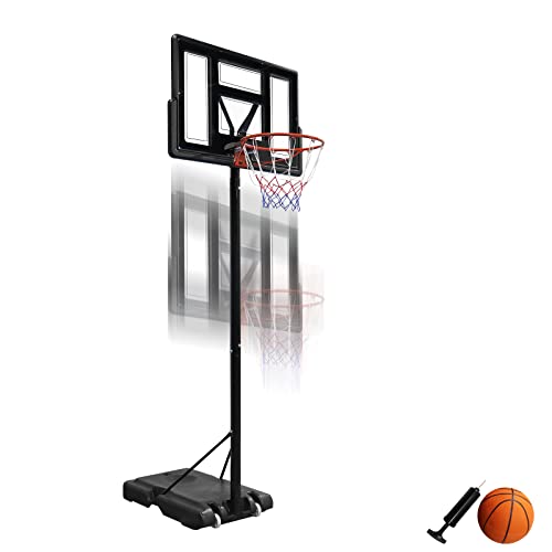 HENGMEI 3.05m Panier de Basket Outdoor, Basketball Indoor Equipement de Jeu, Basketball Hoop Réglable en Hauteur avec Support roulettes INCL. Ballon de Basket pour Enfants et Adultes, Noir