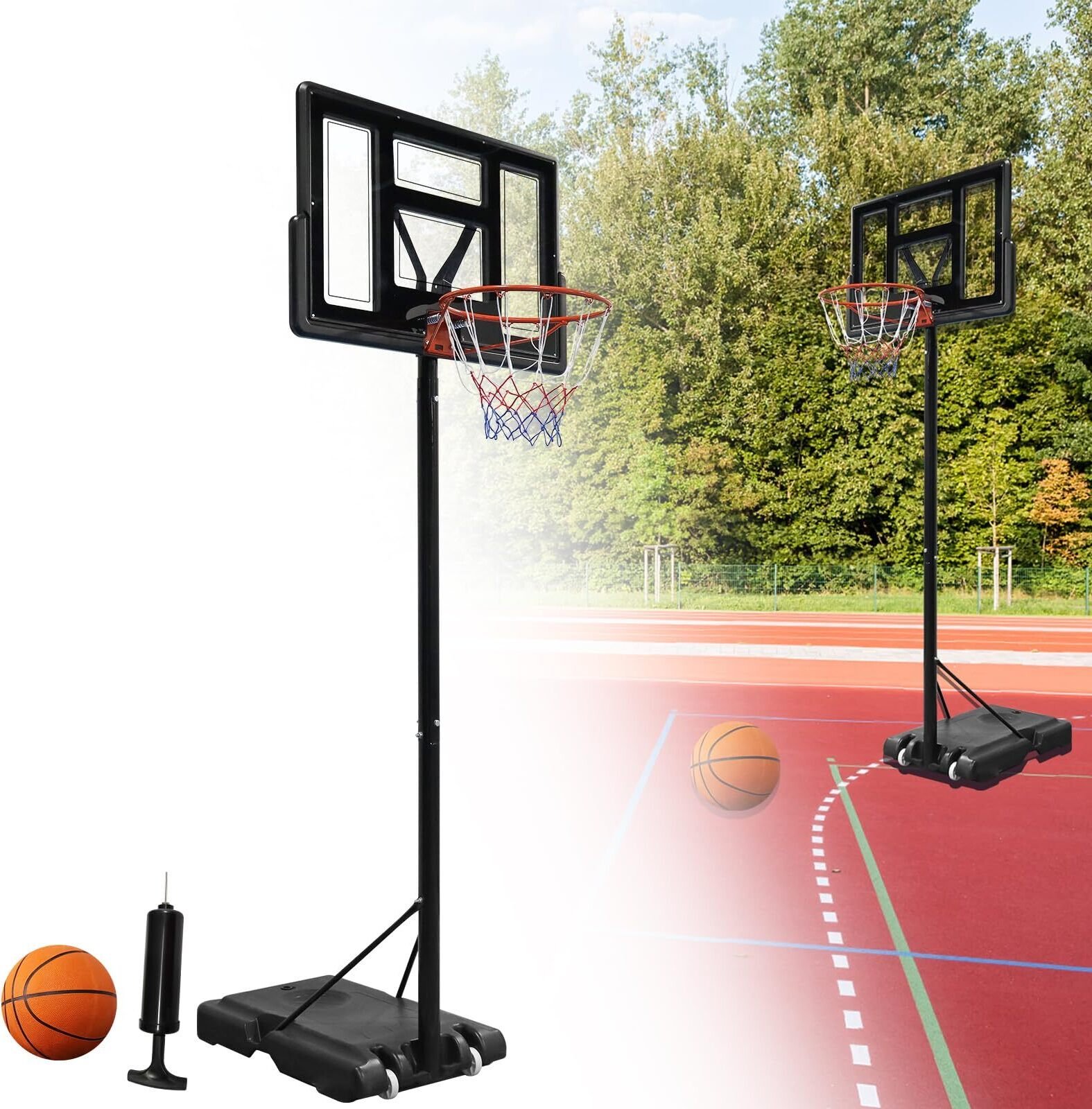 Sessamen-LP Panier de basket-ball 3.05m Outdoor, Installation de basket-ball Indoor Equipement de jeu, Basketball Hoop Réglable en hauteur avec support Roulettes Incl. basket-ball pour enfants et adultes, Noir