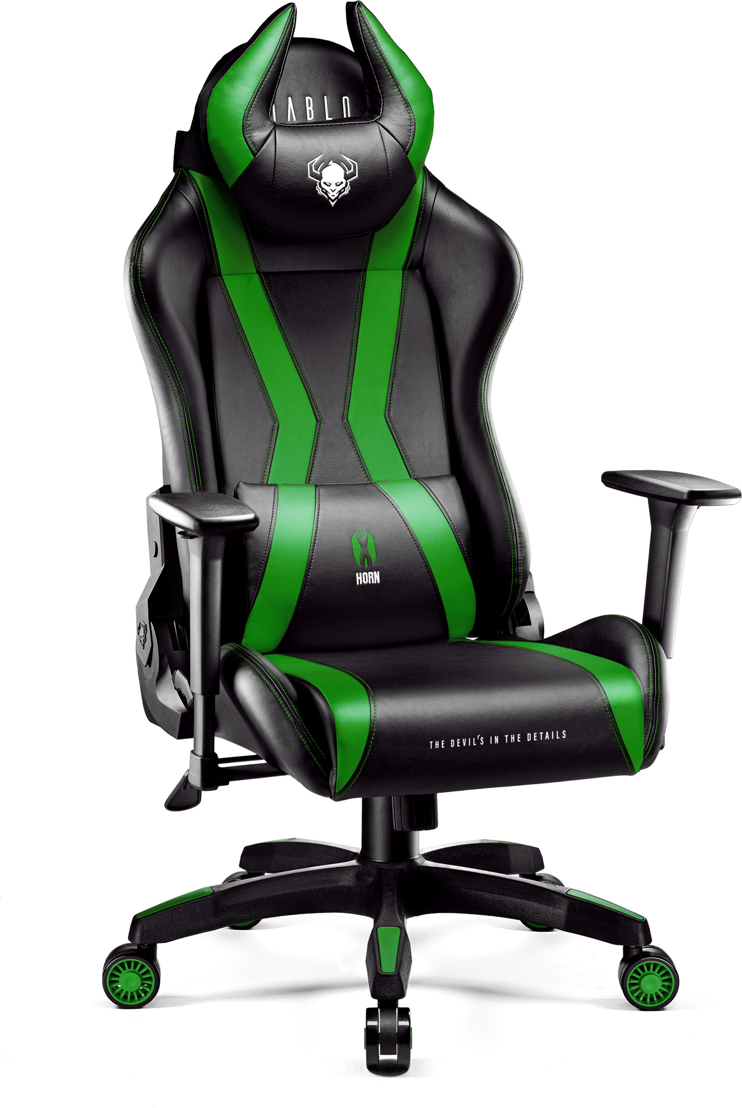 Diablo X-Horn Gaming Chair Office Chair 3D Armrests Ergonomic Design Neck/Lumbar Cushion Imitation Leather Rocking Function Normal Size Black/Green