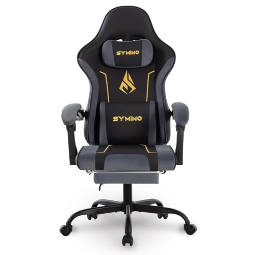 Symino Ergonomic Gaming Chair with Latex Cushion, Enhanced Headrest & Lumbar Support, Adjustable Swivel Office Chair, 150kg Load Capacity, PU Leather