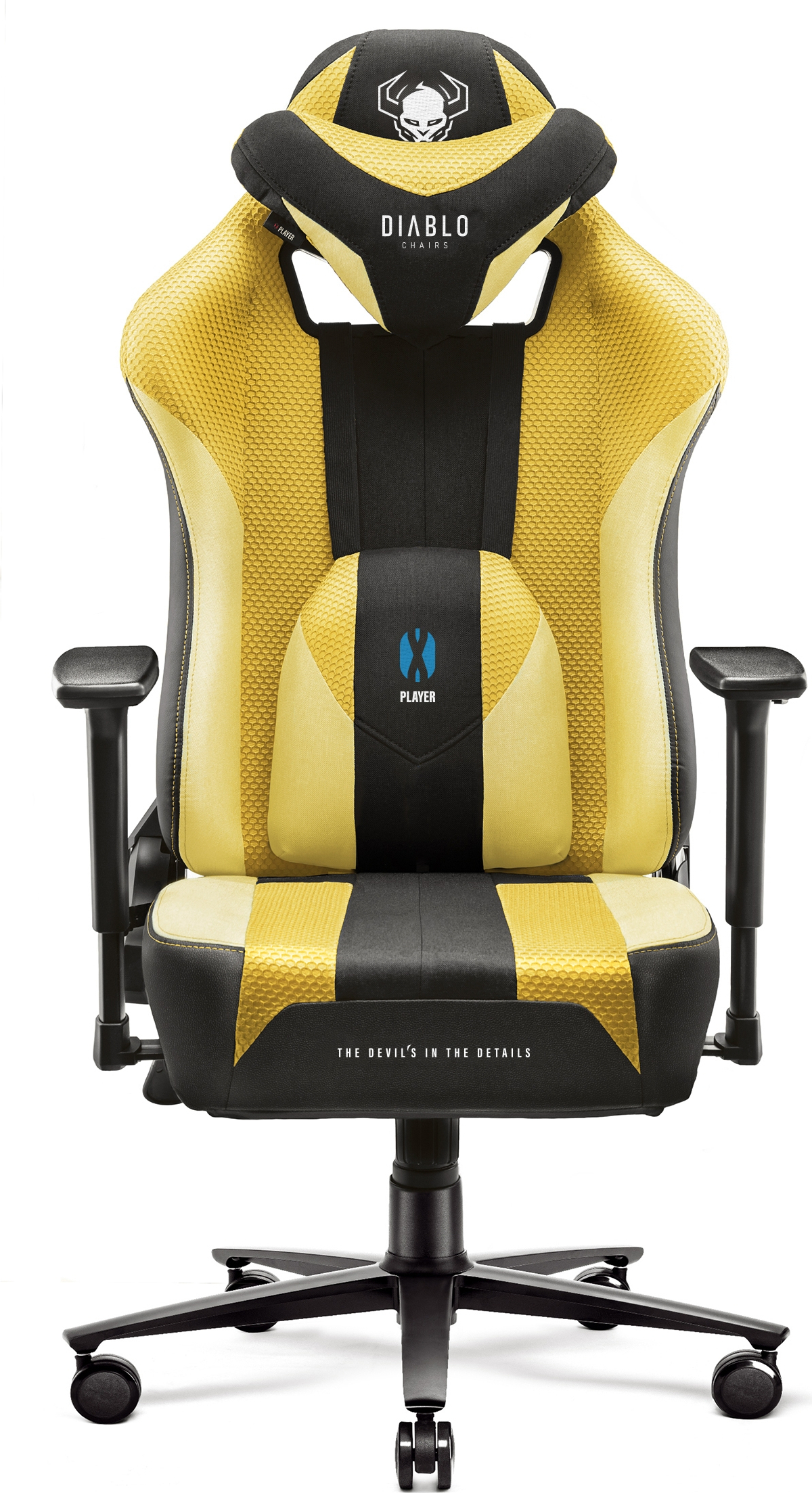 Diablo X-Player Gaming Chair Office Chair Fabric 3D Armrests Ergonomic Design Neck/Lumbar Cushion Dark Sunflower/Yellow King Size XL