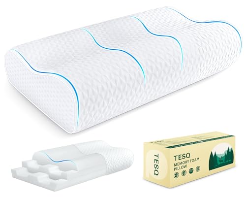 TESQ Oreiller Ergonomique Cervical - Oreiller Mémoire Forme à Hauteur Réglable, Conçu pour Épouser Les Courbes Naturelles et Favoriser la Dissipation de la Chaleur