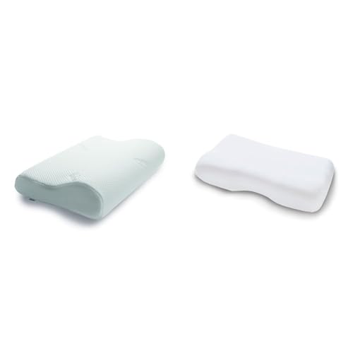 TEMPUR Oreiller Ergonomique pour Dormir sur Le côté et sur Le Dos, Mousse viscoélastique à mémoire de Forme, Blanc, M (50 x 31 x 10/7 cm) & Texture Housse de Coussin en Jersey, Blanc., Taille Unique