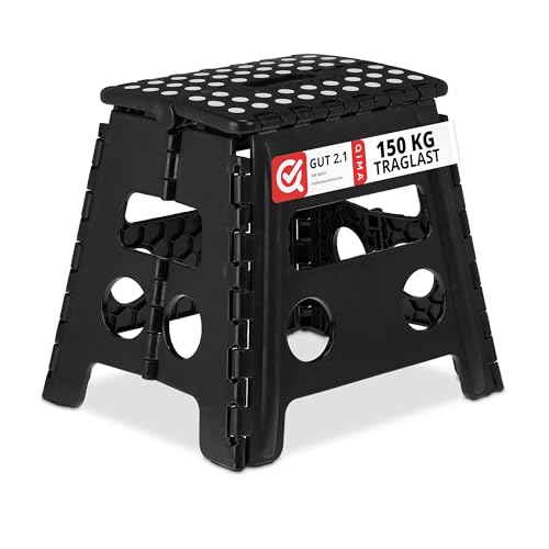 Relaxdays Tabouret Pliable, 1 Marche, Jusqu’à 120 kg, Plastique antidérapant, escabeau Cuisine, 32,5 cm de Haut, Noir