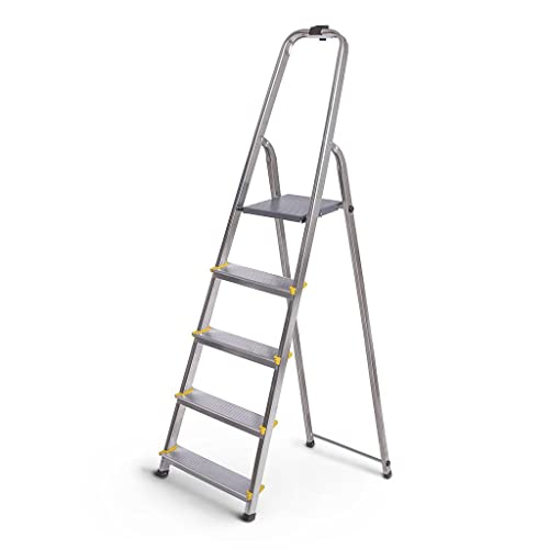 Homelux 710028 Escabeau ménager Plat, Aluminium, 5 marches