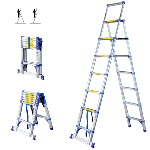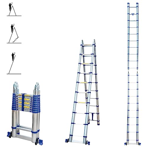Echelle aluminium - Echelle pliante / escabeau - 5,1 m de hauteur - Marches larges - Légèreté - Design épuré - Capacité de charge 150 kg