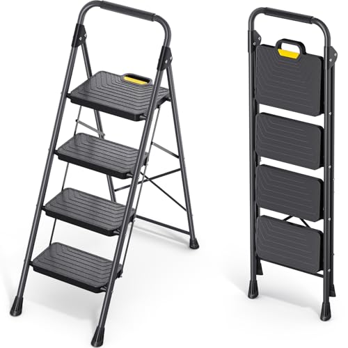 KINGRACK Escabeau à 4 marches en Acier Robuste avec Larges pédales antidérapantes, Main Courante, Design de Verrouillage sécurisé, Passe Les Tests de Charge de 362,9 kg, échelle Pliable Portable pour