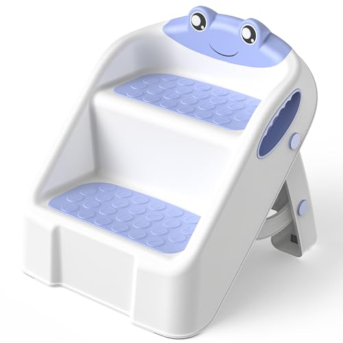 Escabeau Enfant Marche Pied Pliable pour Enfant, Tabouret 2 Marches pour Bébé, Rehausseur Stable, Multifonction et Antidérapant Parfait pour Cusine, Apprentissage, Salle de Bain, de la Propreté