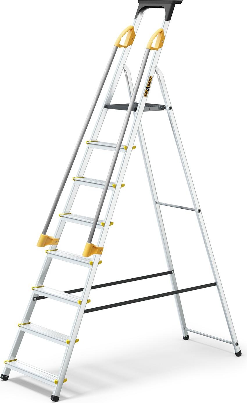 Drabest | échelle - 8 marches, charge max. 150kg - échelle avec mains courantes, échelle en aluminium, pieds antidérapants, escabeau, échelle pliante