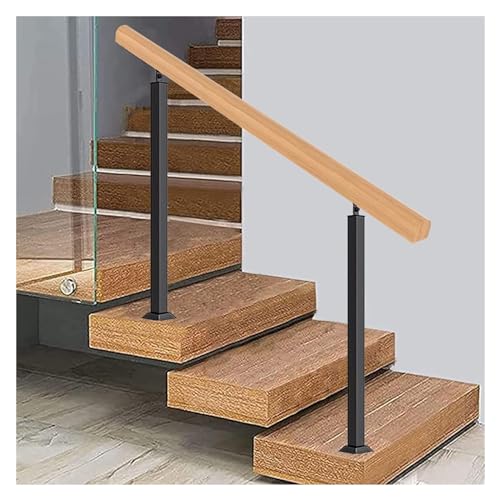 LQSYBHD Main Courante pour Escalier Extérieure, Rampe D'escalier En Bois de 1 à 3 Marches Avec 2 Piquets En Fer Forgé, Piquet de Main Courante pour(Size:wooden handrail 2.6ft/80cm,Color:H 75cm/29.5in)