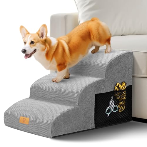Thihome Escaliers pour Chiens à 3 Marches, Escaliers Chien en Éponge Haute Densité, Rampe avec Housse Lavable, Escalier pour Animaux en Mousse pour Petit Chiens et Chats, Gris